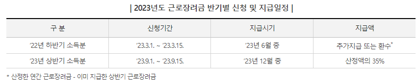 -하반기 신청자는 상반기와 하반기의 총급여를 합산하여 근로장려금 지급액을 산정합니다.