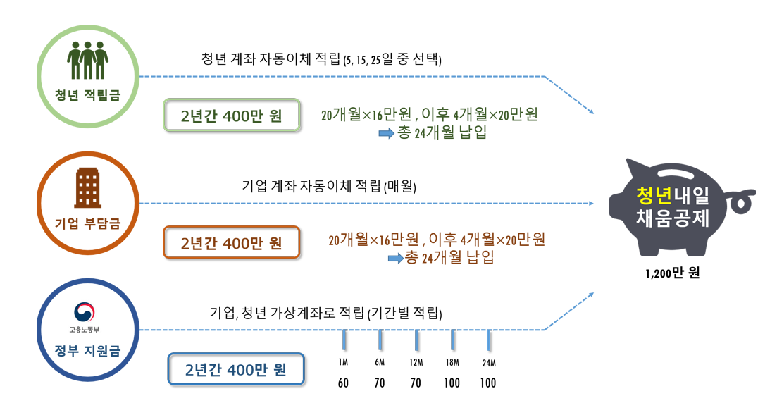 ※ 기업적립금(2년간 400만 원 : 20개월간 16만 원, 이후 4개월간 20만 원)은 100% 기업 부담.